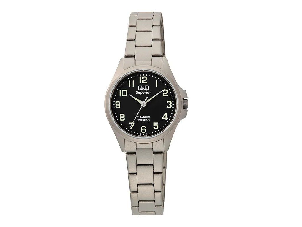 Dámské hodinky z kolekce Superior Titanium - série modelů vyrobených výhradně z titanu. Tyto hodinky mají klasický design a vzhled, mají černý analogový displej skrytý pod odolným minerálním sklem. Pohání je japonský quartzový strojek. Průměr 28 mm, tloušťka pouzdra 7,9 mm, hmotnost 42 g. Vodotěsnost 5 ATM.