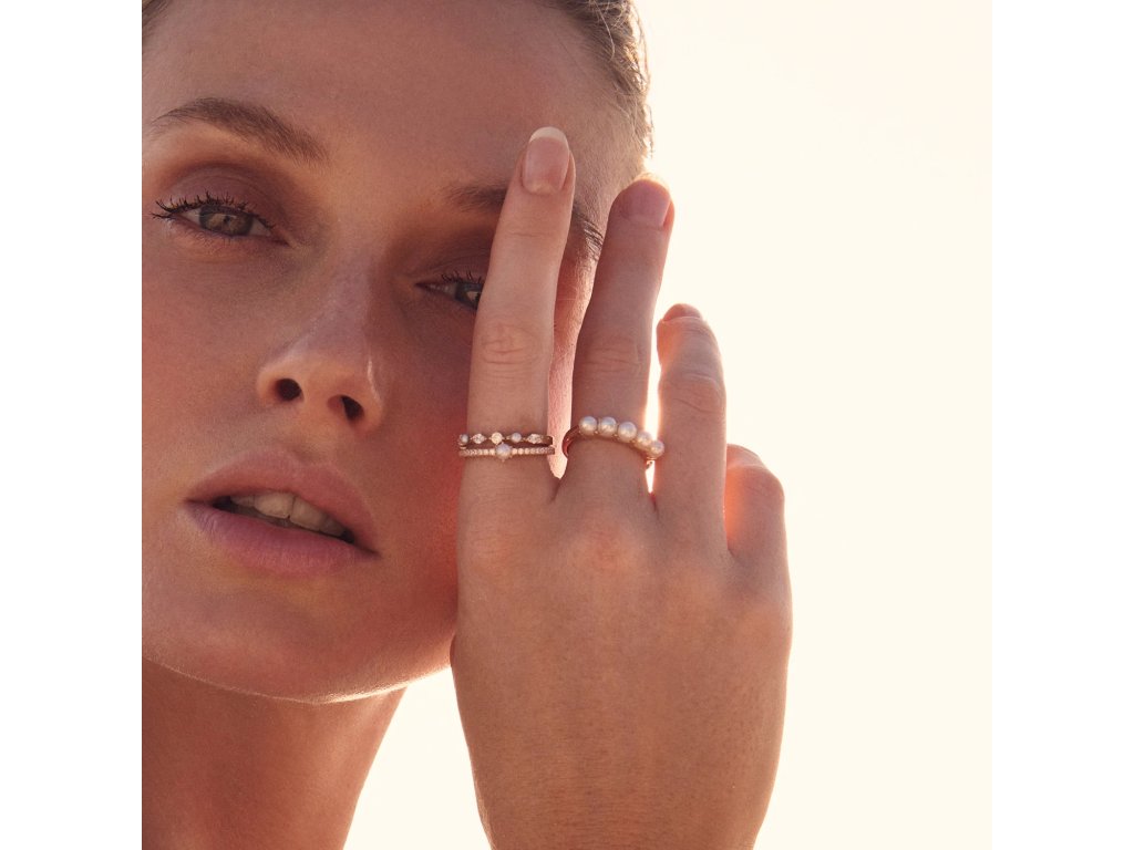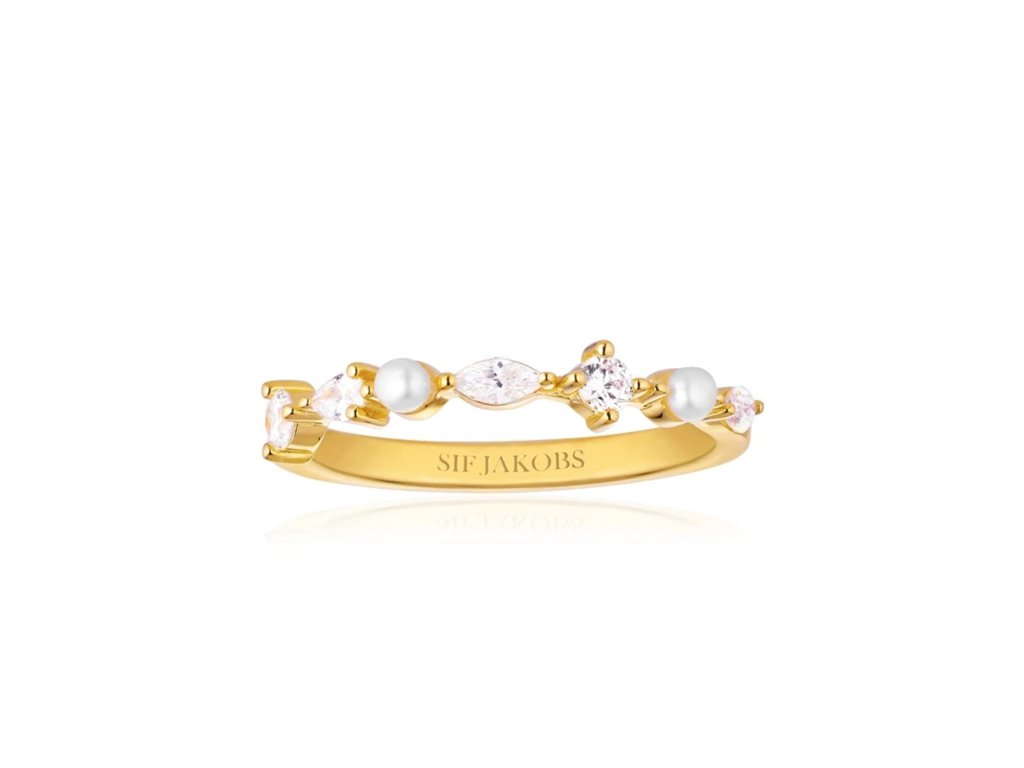 SIF JAKOBS – ADRIA PRSTEN – SE SLADKOVODNÍMI PERLAMI A BÍLÝMI ZIRKONY, POZLACENO 18K ZLATEM